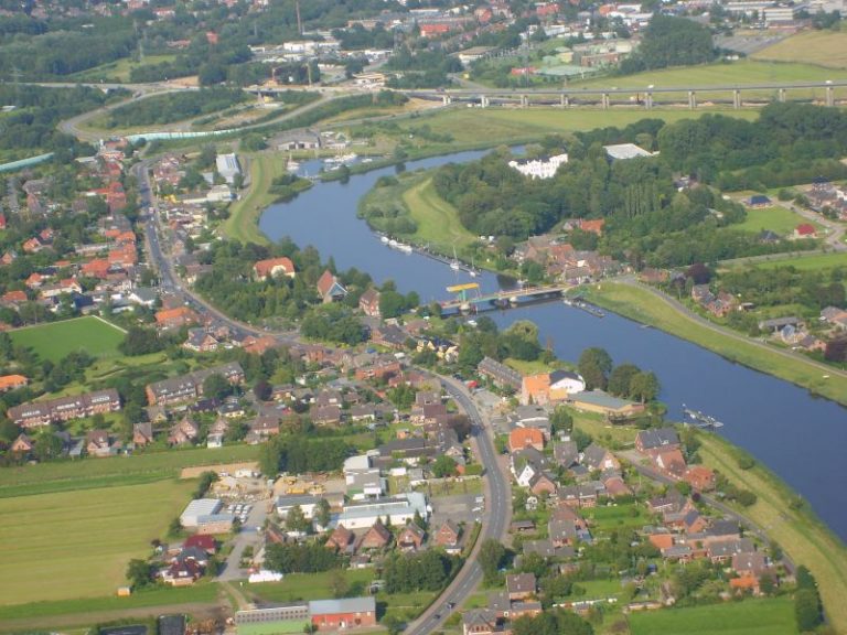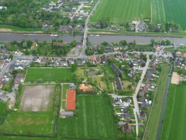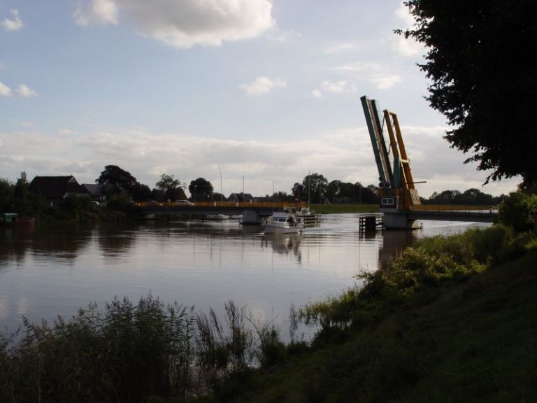 In Heiligenstedten, a bascule bridge blocks the way. The opening of the bascule bridge can be reached via the friendly bridge attendant and her colleagues, who have their office in the thatched-roof house on the starboard side of the dike. The bridge will open upon hearing the two long horn signals. Advance reservations can be made by calling 04821 / 84325 .